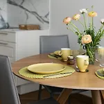 8-pokojowy Korio Apartments, Druskininkai oferuje Gościom możliwość podziwiania zachodów słońca nad brzegiem Druskonis, który leży w odległości 750 metrów. Apartament dysponuje również tarasem z widokiem na dziedziniec.